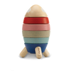 Brightly colored small cars in yellow, blue and red, racing down the wooden ramp. Which one will go down the furthest? Ready, set, go!
